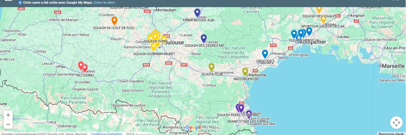 | MEDISQUASH | 15 rue du caducée, 34090, MONTPELLIER | 04.67.54.46.20 | contact@squash-club-montpellier.fr |